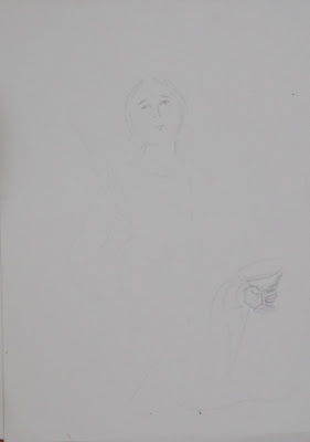 As imagens são os pormenores da pintura da obra "Santa Luzia" - Técnica Mista sobre papel - original de Gráccio Caetano - www.gracciocaetano.com
